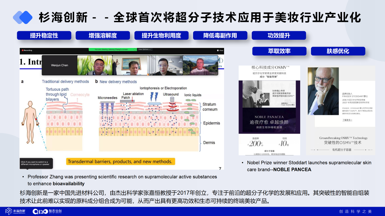 我们期待未来继续与全球的专业伙伴保持开放的交流和合作,共同推动个人护理品行业的发展。超分子智组装技术和其他创新技术在未来的应用将无疑为化妆品行业带来新的可能性。杉海创新团队也将继续探索和开发,寻求更多的高效安全护肤原料,让广大消费者从中感受到科技对美的独特诠释。